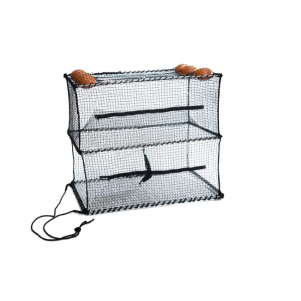 L’une des caractéristiques les plus remarquables de la nasse à poisson est sa conception pliable, ce qui facilite son transport et son stockage. Elle dispose de deux entrées dans la partie bas pour une capture plus efficace, une fermeture éclair pour retirer les captures, une poche â appâts et des poches pour les flotteurs.