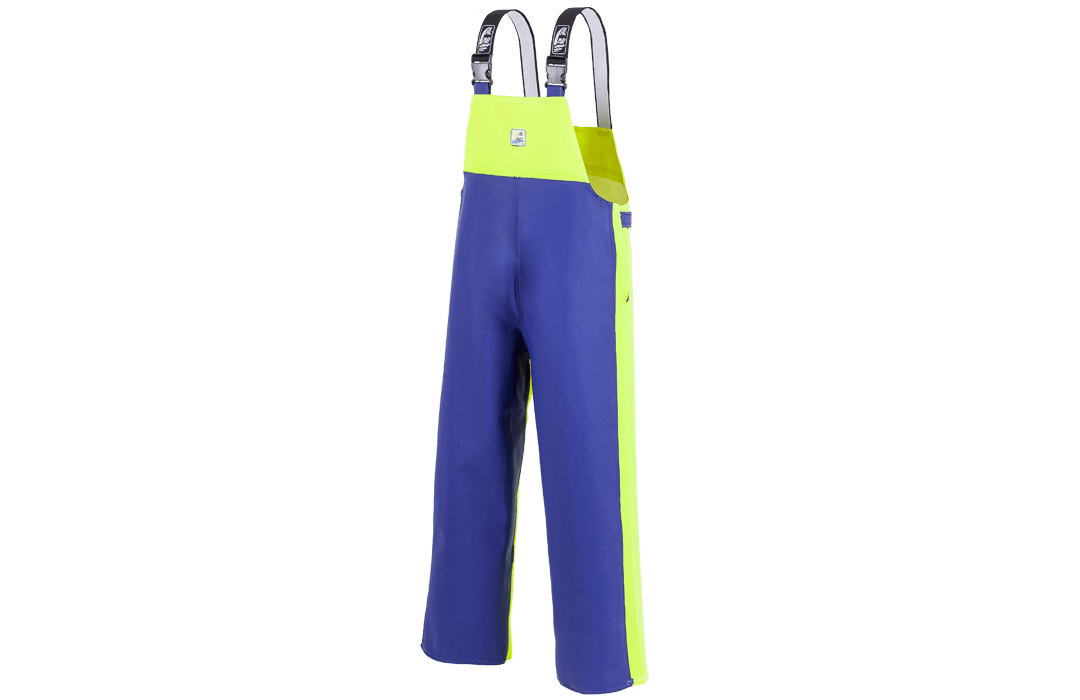 Ciré à bretelles élastiques et boucles réglables, fermeture latérale réglable avec boucle, poche poitrine intérieure, devant en double tissu.